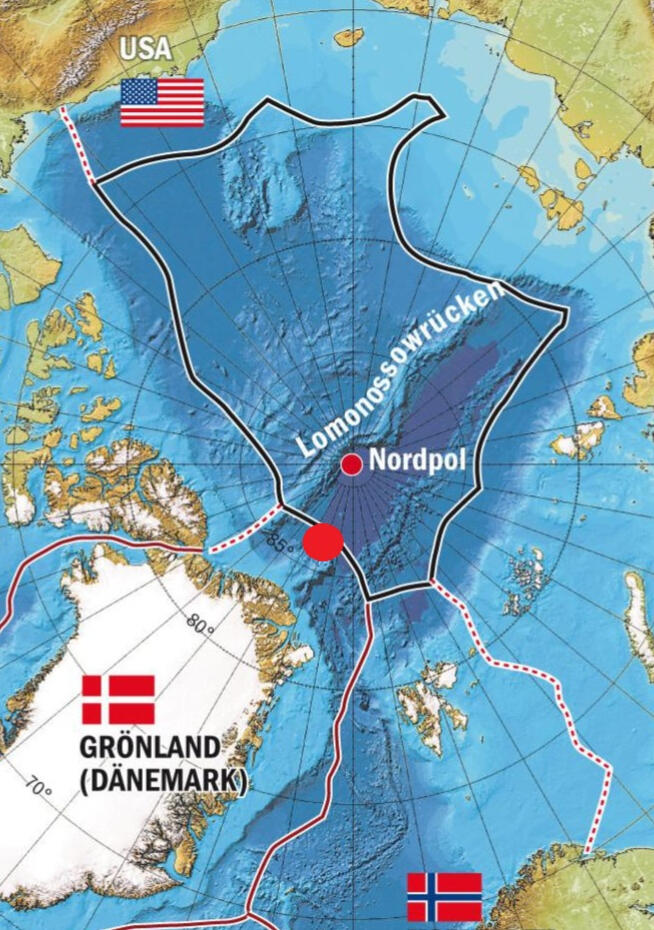 Location before 08.12.1996:Located in the arctic ocean in between the ends of the Lomonsov ridge and the Gakkel ridge towards the coast of Greenland (red dot).