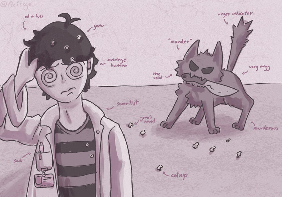 Geno soon woke up finding Murder petting him realizing it was all a dream… or was it?Season 2 Act IXGeno looked around as Murder was petting him. "Is everything alright?" Murder asked, noticing him being on edge "Did I really do that?" Geno asked shaking. "Do what?" Murder asked confused. "Did I really make the platform blow it in the generator." Murder was shocked by that statement and stayed quiet before saying "No. Everything is okay. You haven’t done any of that. Why did you ask?" Geno sighed and explained the dream he had. Murder just stared in shock, she didn’t know he could be that destructive and she was studying him. "You really did all of that? That was reckless of you but you still did it. It seems you really care about me. Thank you, now let’s get this shit ready. Next up is the command center for the entrance." Murder said as Geno listens. "We need to be careful Geno, we don’t know if there is anyone there." Geno nods, slowly becoming scared, not wanting his dream to become true.Season 2 Act XMurder sighed as she and Geno walked to the command center. She knew that she wouldn’t be around if her plan fails, but she needed more time. Unfortunately Geno was the one stopping her. By now she realized she doesn’t want to go on with the plan seeing as Geno cares about her. They had formed a bond after being together but now she had a choice. Stop her plan or.. she stopped herself and forced a fake smile and kept walking until they reached the control room. It look liked someone had been there recently as the camera’s were on. She noticed that Geno was tearing up for some reason. "Are you okay Geno? You seem to be crying..". Geno nodded "Yeah I’m fine. I just sometimes tear up for no reason…" he explained as Murder sighed again. She looks around the control room and grabs Geno after she grabbed a map of the floor. "This will make it better to navigate and restore power."Season 2 Act XIGeno looked at the map and was confused, "Uh Murder? What are these other floors on here?". Murder quickly grabbed the map and sighed. "You see UG3? That’s where we are. Before the platform had the incident there were 8 underground floors. Most of them are completely flooded. I don’t want to go down to the fifth layer. Besides the National animal there, there is also radiation that I don’t want you to experience. It may not look like it but I don’t want what happened down there to happen to you… so many terrible things…" she started to get sidetracked and was about to cry but kept her composure and continued. "Anyways we are never going down there. Hopefully…" she finished as Geno looks at her in shock, he didn’t know there were any more underground layers, the furthest he’d been down was Murder’s lab but Murder saying that there is radiation made he thought that he would never have to go down there. Hopefully at least. Geno knew he had limits. He still wasn’t used to his fire powers as a cat and that nightmare he had made him even more terrified..Season 2. Act XII: une flamme qui diminueMurder sighed "Guess I went off on a tangent." Geno meowed in response and sighed. He was still afraid of his powers, especially if his emotions get the best of him. He might cause a fire or worse… an explosion that would surely kill him. He tried to stop thinking about it as Murder heard the sound of footsteps. The steps very familiar and soon a woman’s voice spoke, "Well well well, if it isn’t anger issues and her pet. I’m surprised you made it this far but I can’t let you save Keloma. I will have my revenge!" France began laughing as Murder finally snapped and started calling France some things as Geno stared being confused. "Such vulgar language. Guess I have to do what I need to do then. Au revoir! She left as bread started to come out of the shadows. "Geno. Follow France and attack her." Murder whispered to which Geno nods and ran after France without knowing what will happen next. "Let’s get this over with, you bread bitches!!" She starts to attack as Geno was still chasing France who was unaware that she was being followed as she played with her dagger. Geno soon dash at France while covered in flames. He swept France off her feet. "Oh. Guess she sent an animal to deal with me. How dumb is she?" She stood back up and smirks at the fire cat. The battle began as Geno lunged at France who is immediately dodged but isn’t fighting back for some strange reason. It was like she was toying with him. She kept dodging his attacks until that fatal moment. Geno lunged at her one final time as France smirked and stabbed Geno straight in the stomach and twisted the knife as his eyes went wide as she smirked. "Well well well~" she takes her knife out and threw Geno on the floor as she soon walked away letting Geno bleed out on the floor as Murder soon finished slicing the last baguette in half as she began running to where Geno was but when she got there she smelt something metallic as panic went across her face,